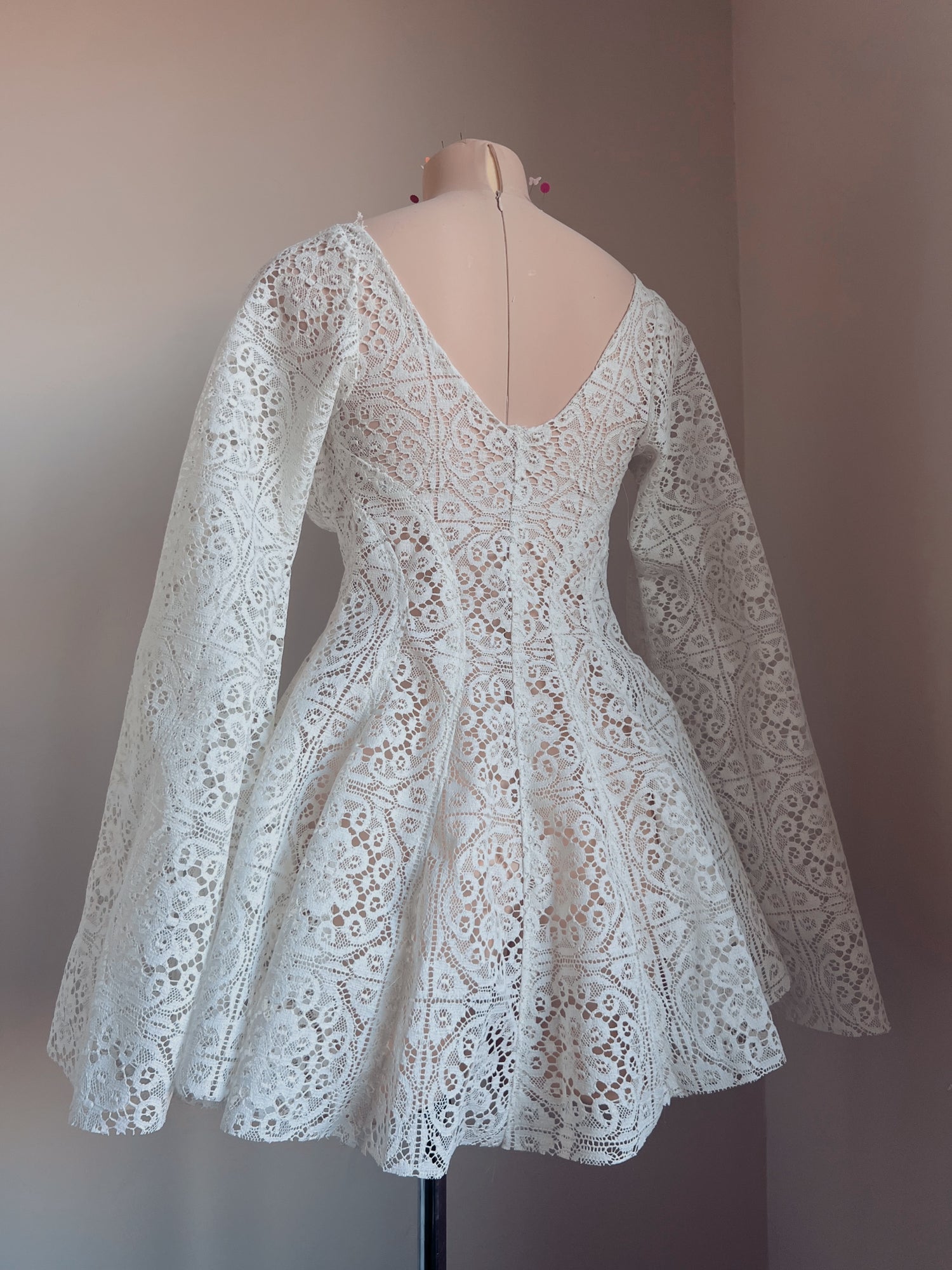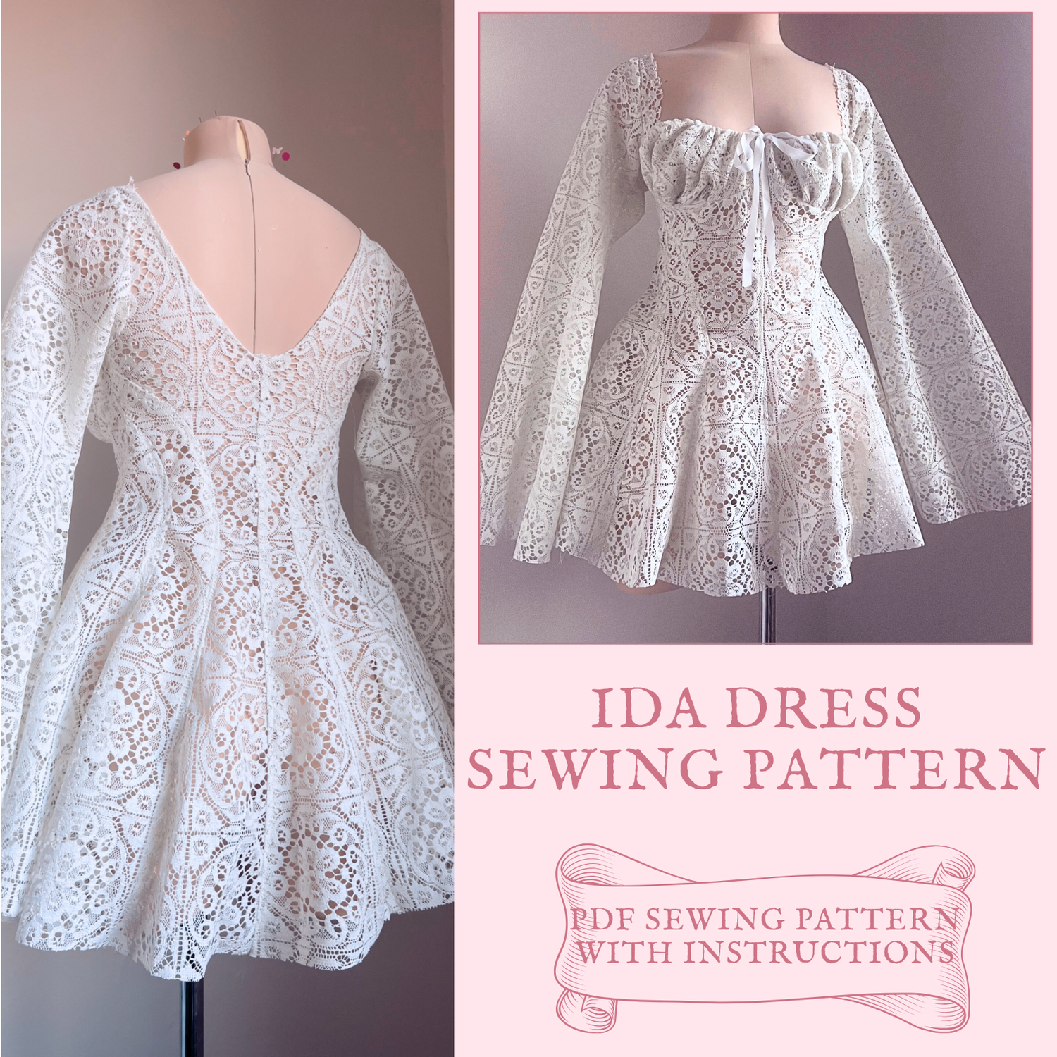 The Ida dress, inspired by romance and love, is a sweet fitted mini dress with beautifully curving seams and bell sleeves, perfect for date night! It features a low cut gathered neckline and square neck and has been drafted for both stretch and non stretch fabrics. No seam allowance is included.